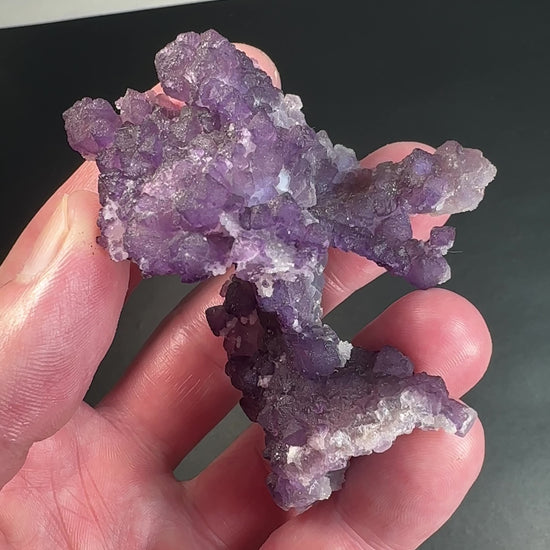 Dark purple fluorite crystals grew all over this quartz cast that grew over calcite. A unique piece from Tombstone, Arizona. Sourced in person from its miner Jim Ricker.