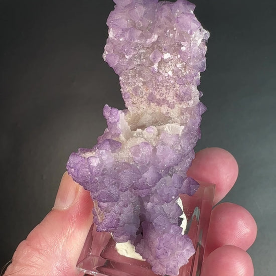 Very special purple fluorite from Arizona. The quartz it grew on is a cast after calcite. Sourced direct from its miner Jim Ricker and friends.